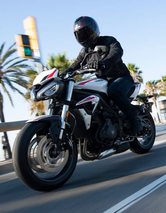The new Street Triple delivers intuitive agile and precise handling and outstanding capability from a stylish motorcycle with a distinctive aggressive attitude and nose-down poise, together with better rider-focused technology that really enhances the ride.